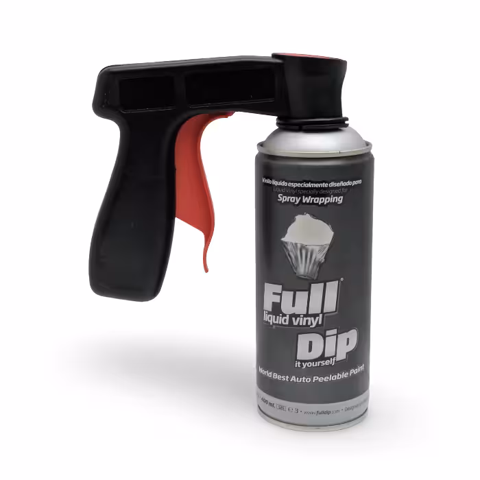 Ērts aerosola smidzināšanas pistole, paredzēta krāsošanai ar Full Dip® vai citiem aerosola izsmidzinātājiem.
